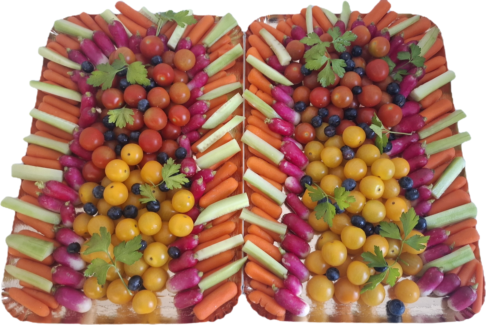 Nos plateaux de crudités accompagnés de fromage blancs sont très appréciés avant de commencer le repas en partageant un moment conviviale avec vos invités.